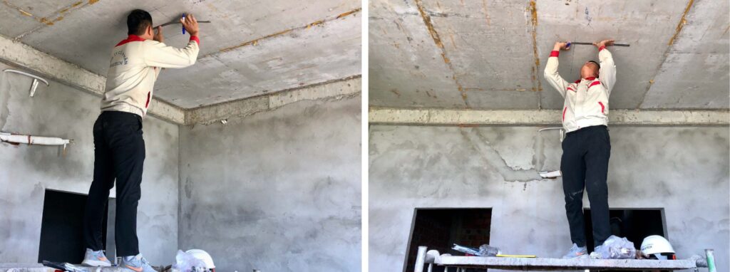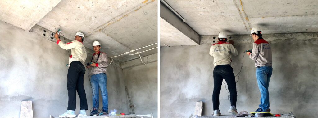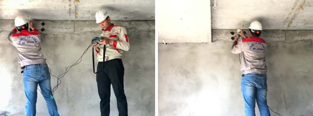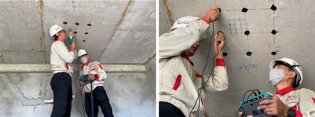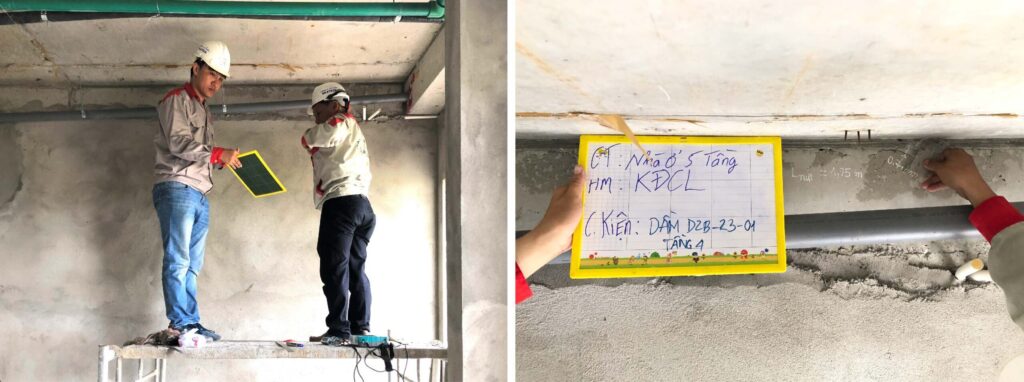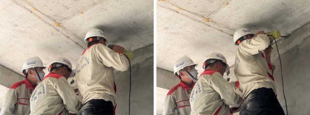 Công tác thực hiện kiểm tra và siêu âm đo chiều sâu vết nứt Dầm – Sàn.