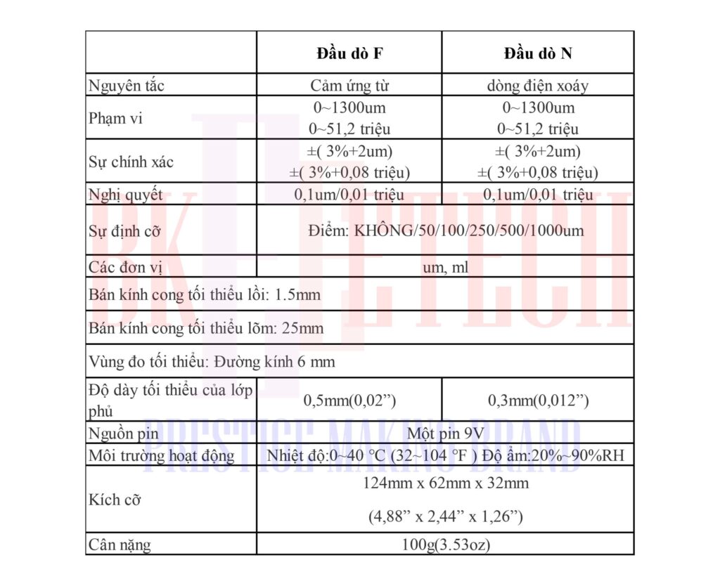 - Máy đo áp dụng nguyên lý cảm ứng điện từ và hiệu ứng dòng xoáy. Nó có đầu dò F và đầu dò N.