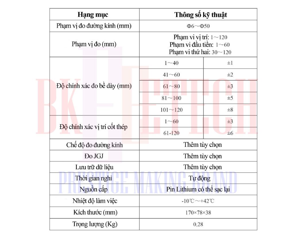 • Ứng dụng: Kiểm tra vị trí, phân bổ hướng và đường kính của cốt thép và độ dày của lớp phủ trong kết cấu bê tông.