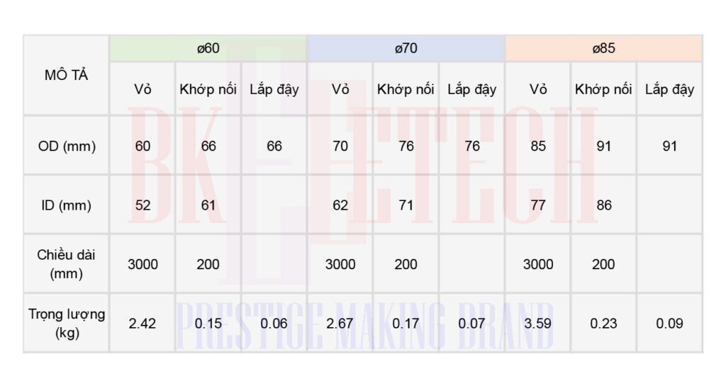 - Cấu trúc làm việc tốt khi chôn trong đất hoặc bê tông.
